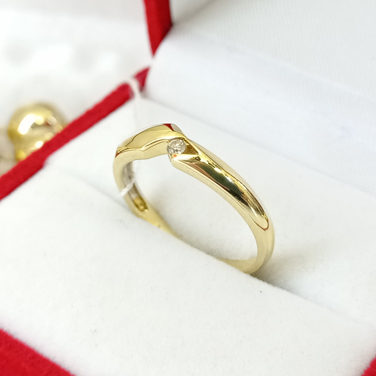Золота каблучка з діамантом Вставка: Діамант_(Кр57-0,02 ct-3/4) Проба 585 Вага 2,3 р. Розмір 17,0 Арт,А. 17094